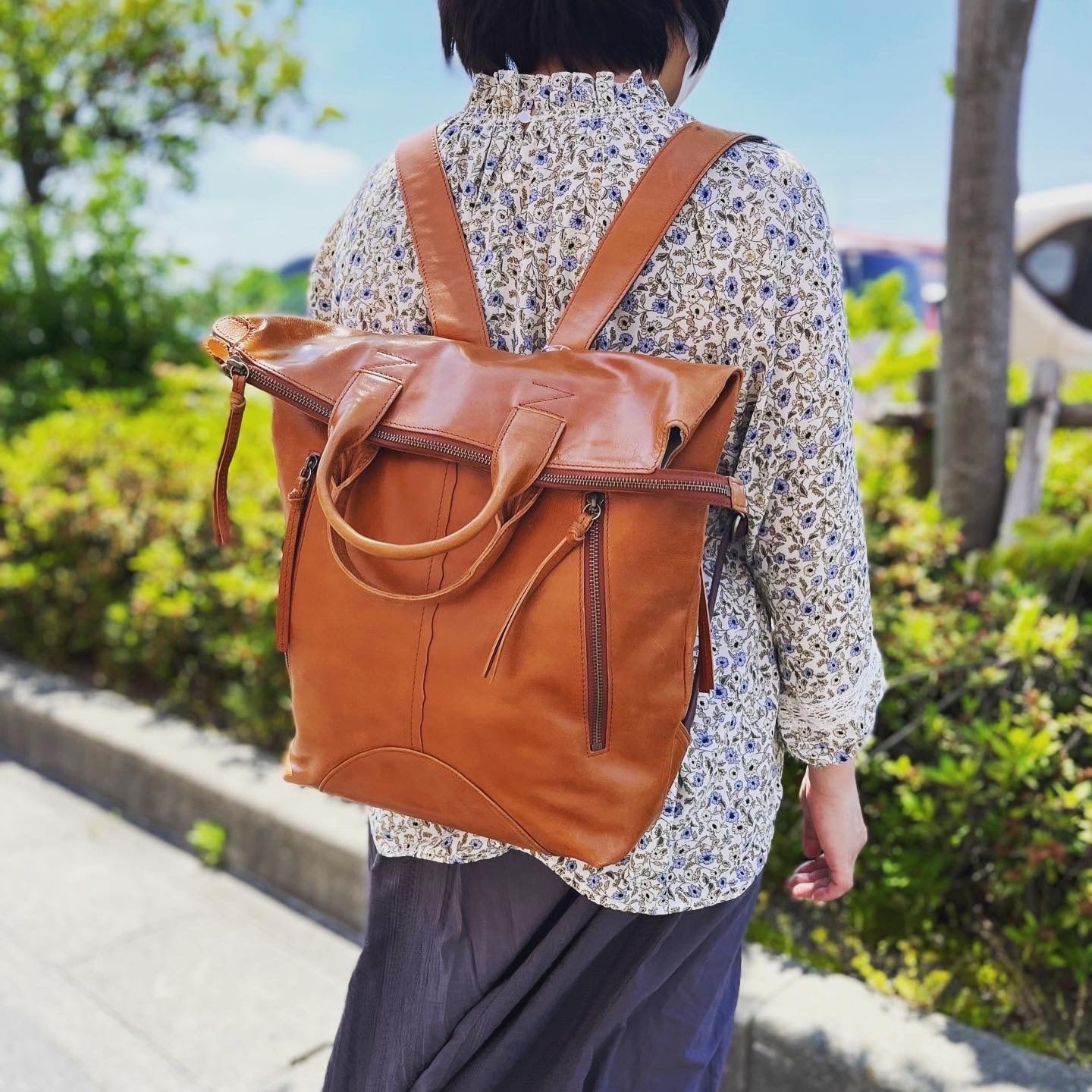 口折れタイプのカジュアルな山羊革リュック